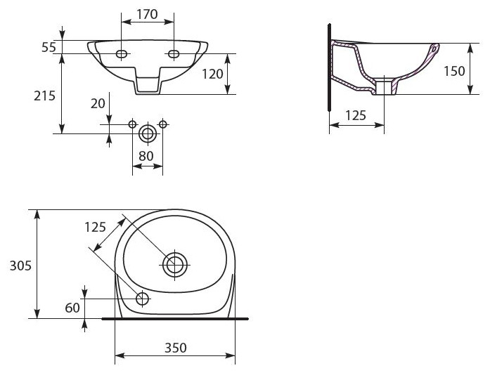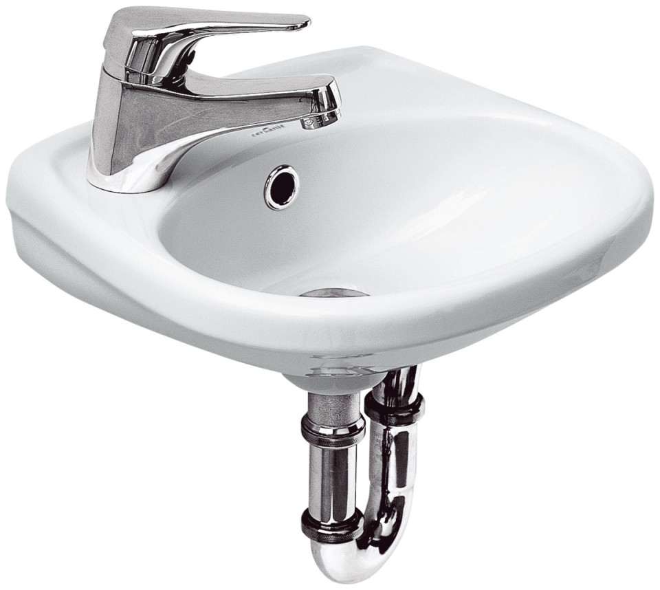 Umywalka Cersanit Eko 35cm (K07-002-L) Z otworem na armaturę po lewej stronie Montaż za pomocą śrub Możliwość montażu z syfonem ozdobnym