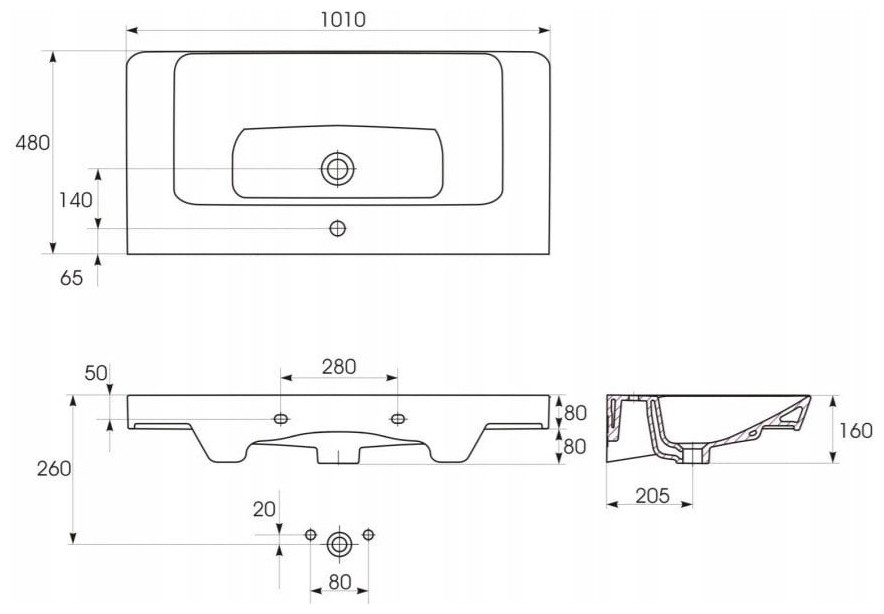 Νιπτήρας Cersanit K11-2324 ΝΙΠΤΗΡΑΣ ΕΠΙΠΛΩΝ MILLE 100X40 BOX CERSANIT // CE.KRMIL.U-1000-MEBL