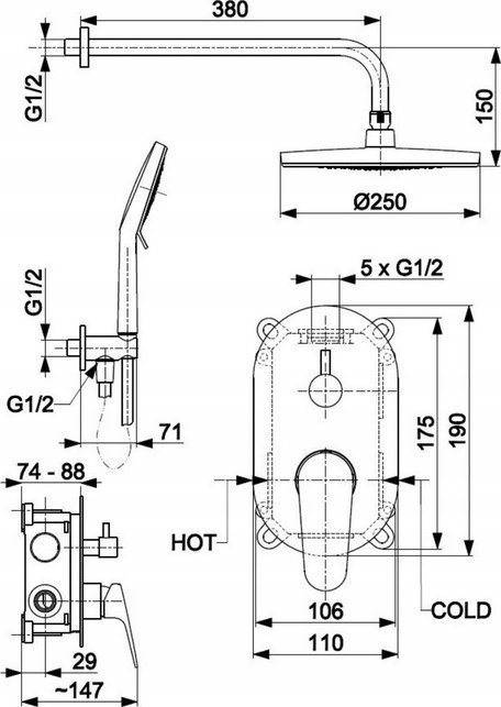 Σετ ντους KFA ΣΕΤ ΝΤΟΥΣ OTAVA ΕΝΤΟΙΧΙΣΜΕΝΟ, ΧΡΩΜΙΟ