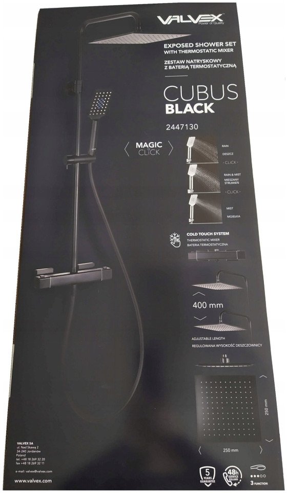 VALVEX CUBUS BLACK Zestaw natryskowy z baterią natryskową - termostatyczną!