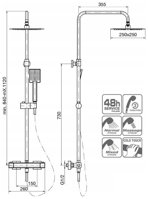 Σετ ντους Valvex 2447130 ΚΟΛΟΝΑ ΝΤΟΥΣ CUBUS BLACK ΜΕ ΘΕΡΜΟΣΤΑΤΙΚΗ ΜΠΑΤΑΡΙΑ VALVEX // BV.2447130