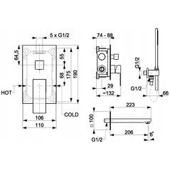Μπαταρία μπανιέρας Cersanit Moduo εντοιχισμένη χρώμιο (S951-338)