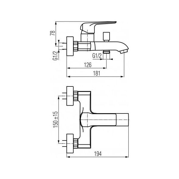 Bateria wannowa Valvex ścienne chrom