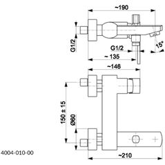 Μπαταρία μπανιέρας Kludi Bozz τοίχου χρώμιο (386910576)