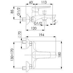 Μπαταρία μπανιέρας Neo Μπαταρία μπανιέρας τοίχου