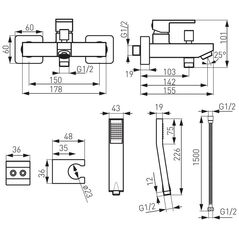 Μπαταρία μπανιέρας Standart Virštinkinė dalis vonios-dušo maišytuvui Ideal Standard, Ceratherm C100 Silk Juodas matinė juoda