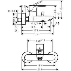 Μπαταρία μπάνιου Hydroland Standard τοίχου χρώμιο (B101)