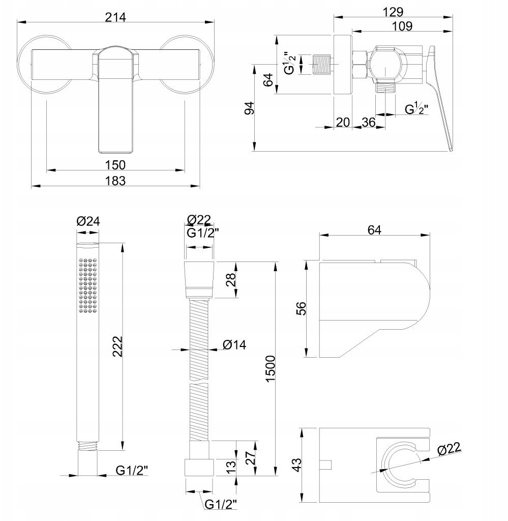 Invena μπαταρία ντους με σετ ντους Neri Plus, χαλκός BN-P1-014-L