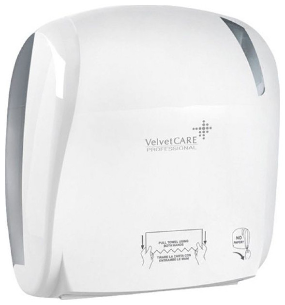 Velvet dispenser πετσετών 150mΥλικό ABS (κάλυμμα), MABS (κάτω και παράθυρο)Χρώμα: λευκό Μηχανικό τροφοδοτικό