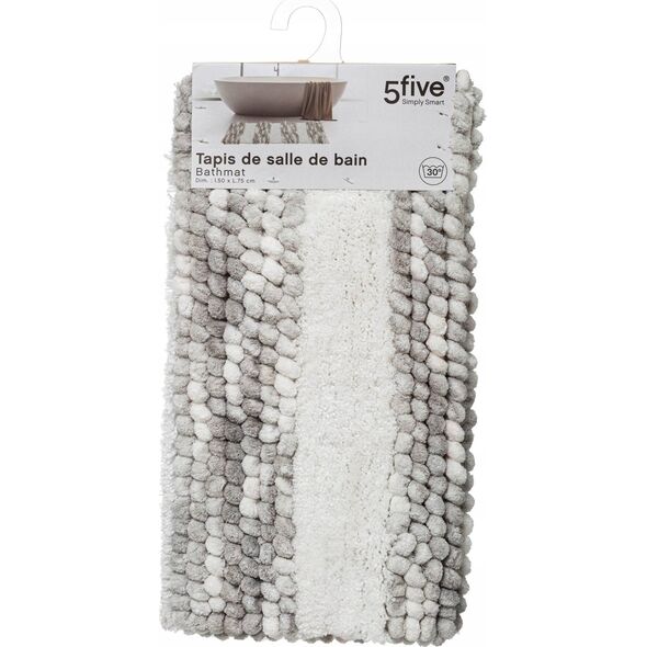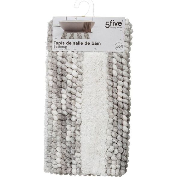 Αναβαθμίστε την αισθητική του μπάνιου σας με το χαλάκι μπάνιου 5five, διαστάσεων 50 x 75 cm, σε κομψό σχέδιο με γκρι-λευκές ρίγες. Αυτό το χαλάκι συνδυάζει την πρακτικότητα με το στυλ, προσφέροντας μια μοντέρνα πινελιά στο χώρο σας. Κατασκευασμένο από υψηλής ποιότητας υλικά, εξασφαλίζει ανθεκτικότητα και άνεση κάτω από τα πόδια σας. Η αντιολισθητική του βάση προσφέρει ασφάλεια, αποτρέποντας τυχόν ατυχήματα σε υγρές επιφάνειες. Ιδανικό για καθημερινή χρήση, το χαλάκι αυτό είναι εύκολο στη συντήρηση και μπορεί να πλυθεί στο πλυντήριο, διατηρώντας την εμφάνισή του αναλλοίωτη. Επιλέξτε το χαλάκι μπάνιου 5five για να προσθέσετε μια διακριτική αλλά κομψή πινελιά στο μπάνιο σας, συνδυάζοντας λειτουργικότητα και αισθητική. Με την εγγύηση ποιότητας της μάρκας 5five, αυτό το προϊόν αποτελεί μια αξιόπιστη επιλογή για κάθε σύγχρονο σπίτι.