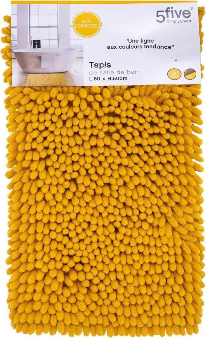 Ανανεώστε το μπάνιο σας με το χαλάκι μπάνιου MAXI CHENILLE από την 5five. Με διαστάσεις 50x80 cm, αυτό το χαλάκι προσφέρει άνεση και στυλ στον χώρο σας. Το έντονο κίτρινο χρώμα του προσθέτει μια ζωντανή πινελιά, κάνοντας το μπάνιο σας να ξεχωρίζει. Κατασκευασμένο από υψηλής ποιότητας υλικά, το χαλάκι αυτό είναι ανθεκτικό και μαλακό στην αφή, προσφέροντας μια ευχάριστη αίσθηση στα πόδια σας μετά το ντους. Η ειδική υφή chenille εξασφαλίζει εξαιρετική απορροφητικότητα, κρατώντας το πάτωμα στεγνό και ασφαλές. Ιδανικό για καθημερινή χρήση, το χαλάκι μπάνιου MAXI CHENILLE συνδυάζει λειτουργικότητα και αισθητική, καθιστώντας το απαραίτητο αξεσουάρ για κάθε σύγχρονο μπάνιο. Ανακαλύψτε την ποιότητα και την κομψότητα της 5five και δώστε στο μπάνιο σας την ανανέωση που του αξίζει.