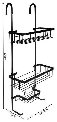 ΠΡΟΔΙΑΓΡΑΦΕΣ – υλικό: αλουμίνιο + επικάλυψη ABS. χρώμα: μαύρο; ανοξείδωτο ατσάλι: ναι; σε αναστολή: ναι; σταθεροποίηση με βεντούζα: ναι; αριθμός ραφιών: 3; διαστάσεις: 63/14/28,5cm; Βάρος: 0,65 kg; Βάρος συσκευασίας: 0,89kg.