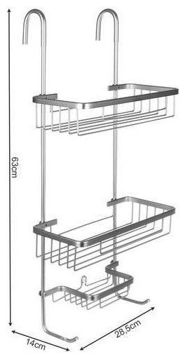 ΠΡΟΔΙΑΓΡΑΦΕΣ – Υλικό: Αλουμίνιο. χρώμα: ασημί; ανοξείδωτο ατσάλι: ναι; σε αναστολή: ναι; σταθεροποίηση με βεντούζα: ναι; αριθμός ραφιών: 3; διαστάσεις: 63/14/28,5cm; Βάρος: 0,65 kg; Βάρος συσκευασίας: 0,89kg.