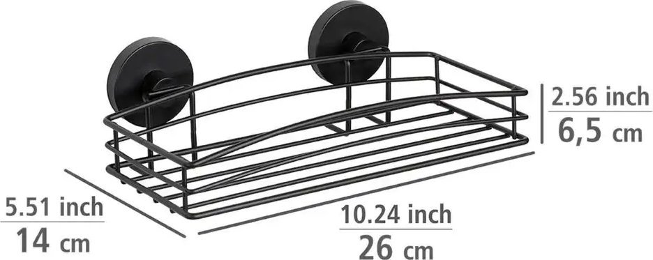 PÓŁKA POD PRYSZNIC Vacuum-Loc metal czarna WENKO Producent: WENKO Zorganizuj się w przestrzeni łazienkowej! Wybierz niesamowicie praktyczną i pomysłową półkę łazienkową od marki WENKO. Tak minimalistyczny i niepozorny produkt znacznie ułatwi Ci wykonywanie codziennych czynności – sprawi, że wszystkie niezbędne kosmetyki i gadżety kąpielowe będą tuż pod ręką, a przy tym usprawni utrzymywanie czystości i higieny w przestrzeni kąpielowej. Półka pod prysznic ma kolor matowej czerni. Konstrukcja z z metalu doskonale sprawdzi się w mokrym środowisku łazienkowym. Jest to materiał odporny na korozję, trwały a przy tym łatwy w czyszczeniu. Woda może swobodnie przelatywać pomiędzy przestrzeniami półeczek, dzięki czemu pumeks, kostka mydła, gąbka i inne akcesoria mogą swobodnie wyschnąć. To niezwykle ważne, aby nie rozwinęła się pleśń. Spora przestrzeń na półce pozwala na zmieszczenie wszelkich kosmetyków oraz przyborów kąpielowych. Wymiary półki: długość 14 x szerokość 26 x wysokość 6,5 będą odpowiednie do większości łazienek, nawet do rogu niewielkiej kabiny prysznicowej czy wanny. Cechy produktu: Półka pod prysznic, ma kolor matowej czerni, pojemna – ustawisz na niej wszystkie niezbędne kosmetyki i gadżety kąpielowe, wykonana z metalu, materiał jest trwały i odporny na korozję, półka łazienkowa jest łatwa w czyszczeniu, wymiary: długość 14 x szerokość 26 x wysokość 6,5, montaż bez wiercenia z technologią Static-Loc, produkt niemieckiej marki WENKO. Kolor dominujący: czarny Materiał dominujący: metal długość (cm): 14 szerokość (cm): 26 wysokość (cm): 6,5 Montaż bez wiercenia: Vacuum-Loc Montaż: bez wiercenia Numer katalogowy: 59534