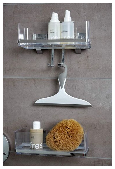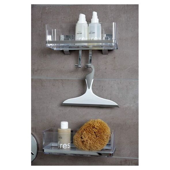 Wenko Vacuum-Loc Quadro wieszak prysznicowy Ten stojak prysznicowy z Wenko jest bardzo przydatny do przechowywania Twoich rzeczy pod prysznicem. Regał posiada również dwa haki, na których można zawiesić ręcznik, ściereczkę lub gąbkę. Regał jest wykonany ze stali nierdzewnej. Dużą zaletą tego stojaka jest to, że można go przymocować do ściany bez konieczności wiercenia! Za pomocą dostarczonej pompy próżniowej można ją przymocować do ściany, a także w łatwy sposób zdemontować Specyfikacje: Kolor: chrom, przezroczysty Płeć: jednopłciowa Materiał: stal nierdzewna Wymiary: 25,5 x 15 x 14 cm (szer. x wys. x gł.) Zawartość: 1 Uchwyt na ręczniki 1 Pompa próżniowa
