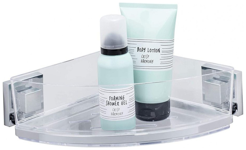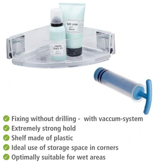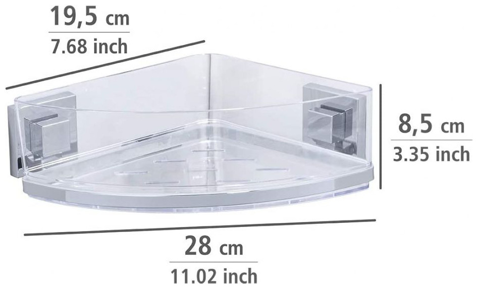 Στήριγμα ντους και μπανιέρας Wenko Vacuum-Loc Ένα κομψό γωνιακό ράφι που θα φαίνεται όμορφο στο εσωτερικό του μπάνιου. Η κλειδαριά κενού σάς επιτρέπει να στερεώνετε εύκολα τη θήκη στον τοίχο χάρη στην αντλία που περιλαμβάνεται. Προδιαγραφές: Χρώμα: ασημί, διαφανές Φύλο: single-sex Υλικό: ανοξείδωτο ατσάλι Διαστάσεις: 19,5 x 28 x 8,5 cm (Μ x Π x Υ)