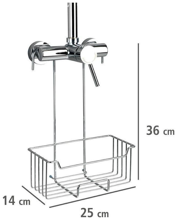 Ράφι βρύσης ντους Caddy Milo Από ανοξείδωτο ατσάλι, ασημί χρώμα, για ανάρτηση σε μπάρα ντους Χαρακτηριστικά προϊόντος: Υλικά: Ανοξείδωτο ατσάλι Χρώματα: Ασημί Στυλ: ΜοντέρνοΎψος: 36 cm Πλάτος: 25 cm Βάθος: 14 cm