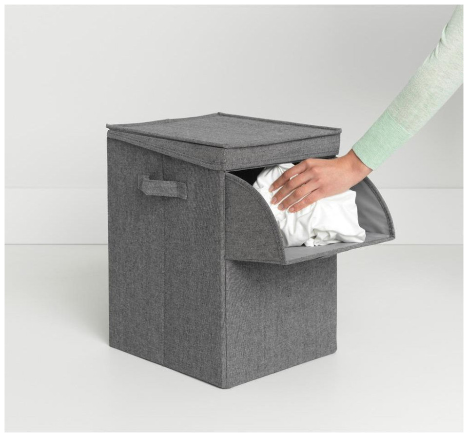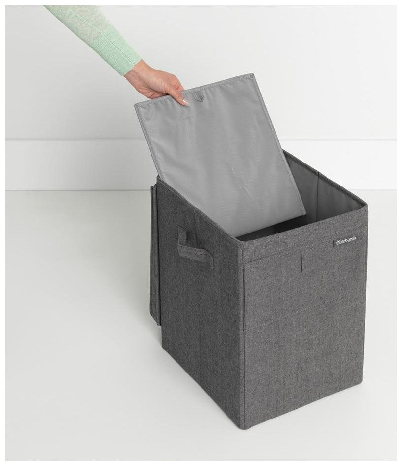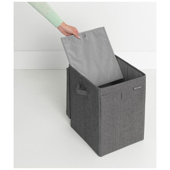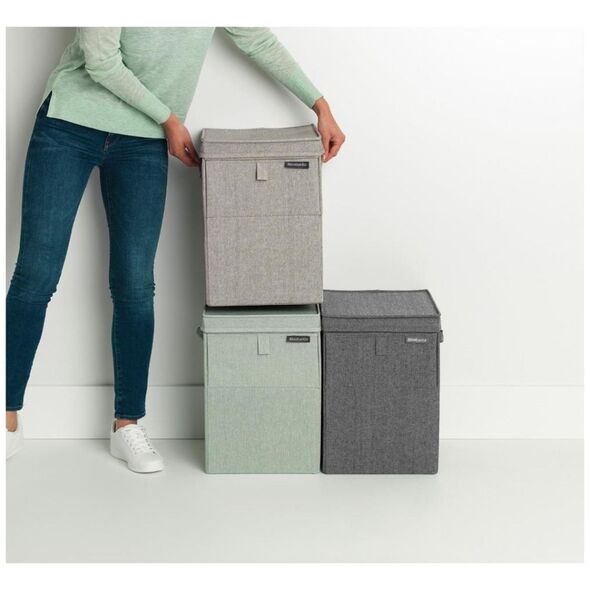 Elegancki i praktyczny pojemnik marki Brabantia. Dzięki swojej kompaktowej budowie, ten 35 litrowy pojemnik pomieści całą partię prania. W razie potrzeby producent umożliwił zaprojektowanie własnego systemu sortowania - pojemniki można układać jeden na drugim. Każdy ma pokrywę na górze i otwór z przodu co ułatwia załadunek i rozadunek. Kosz jest lekki, a dzięki uchwytom które są bardzo wytrzymałe możemy bez problemu przenieść pojemnik z jednego miejsca na drugie. Kosz, gdy jest nieużywany można poskładać i schować, co pozwoli nam zaoszczędzić miejsce. Wykonany z trwałej, wytrzymałej poliestrowej tkaniny. Zalecane czyszczenie wilgotną gąbką.