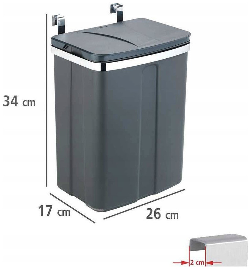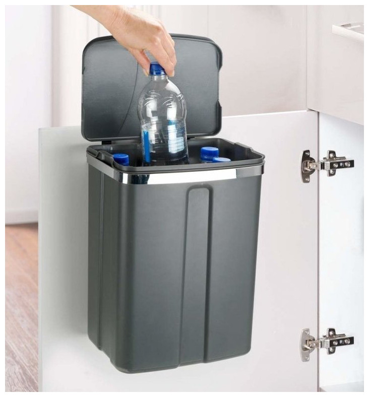Καλάθι πλυντηρίου Praktyczna κάδος απορριμμάτων, κουζίνας, για απορρίμματα, κάδος, κρεμαστός, σε γκρι χρώμα, 12l