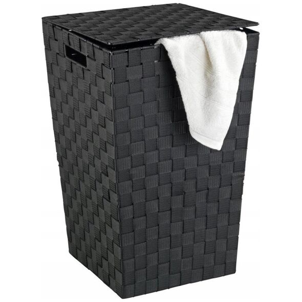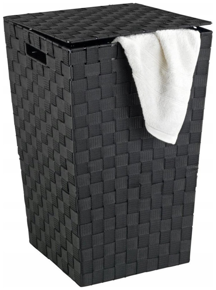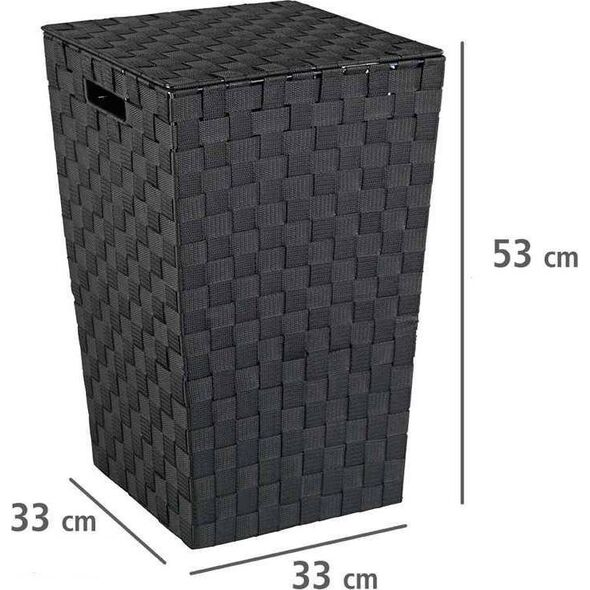 Διακοσμητικό καλάθι για άπλυτα Wenko Adria, κλειστή κατασκευή, δύο λαβές για εύκολη μεταφορά, 48 λίτρα, μαύρο χρώμα, μάρκα WENKO