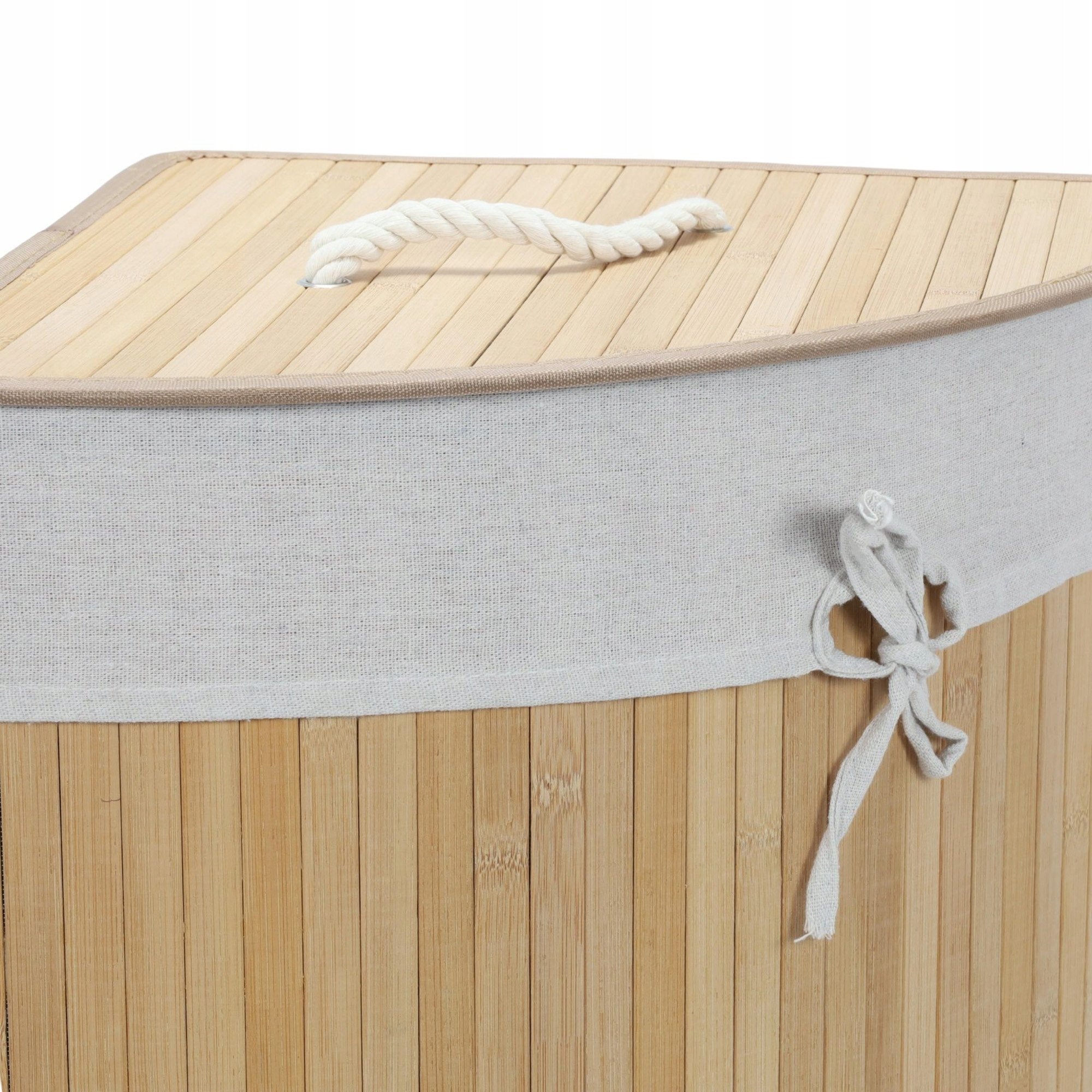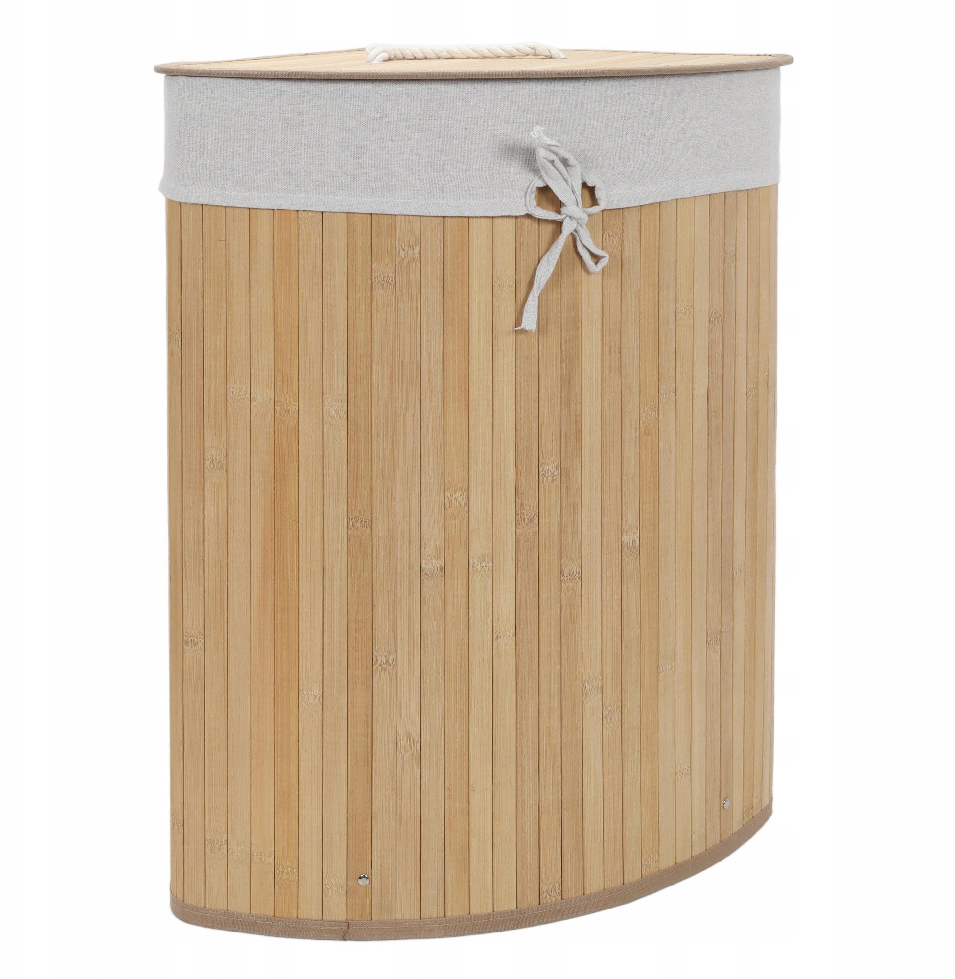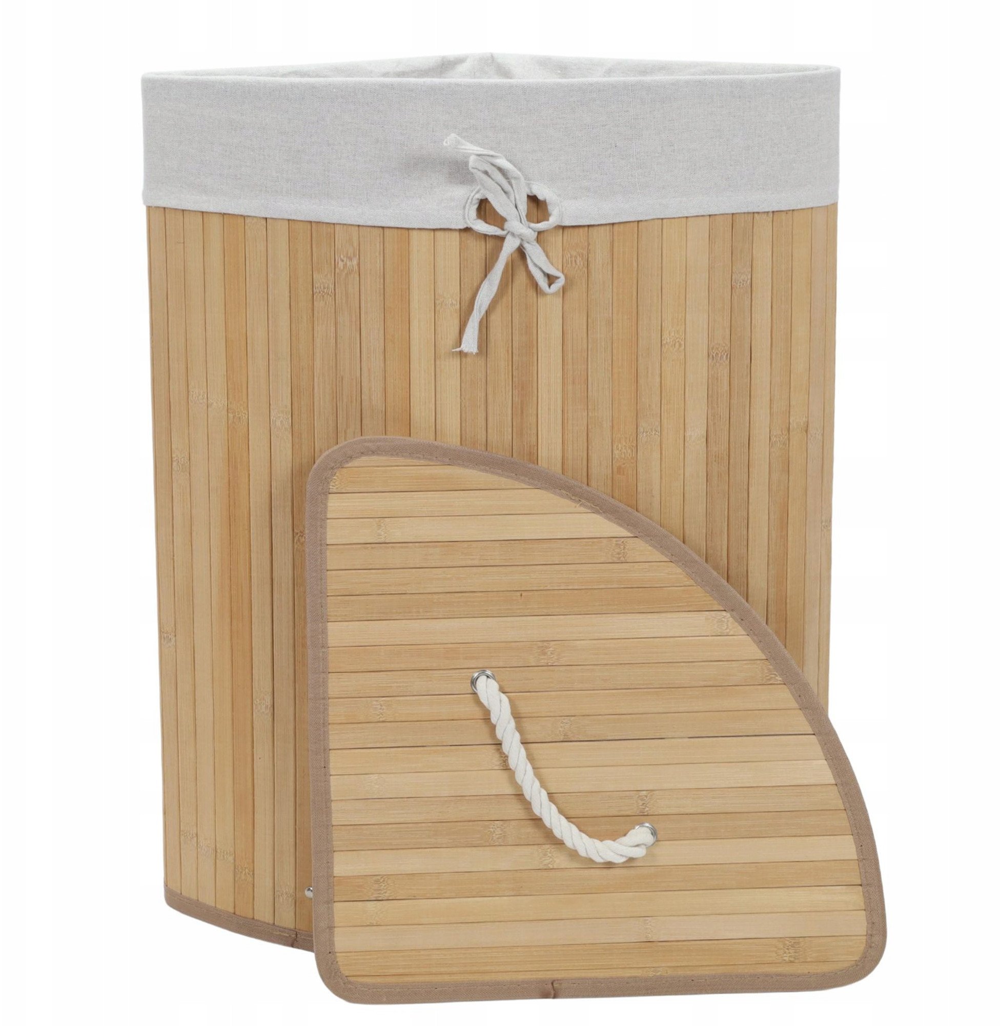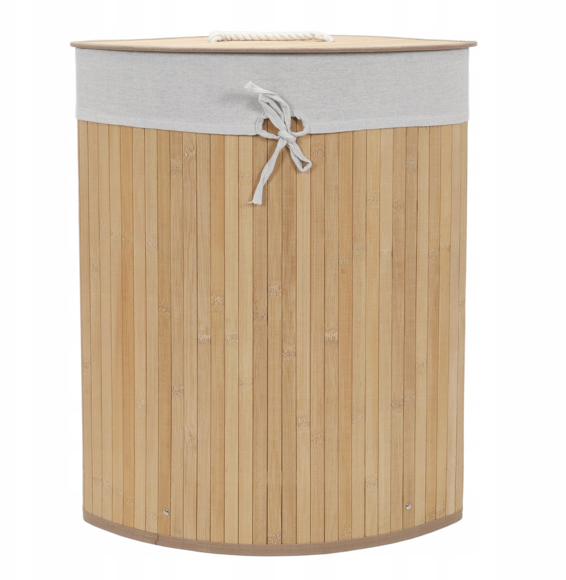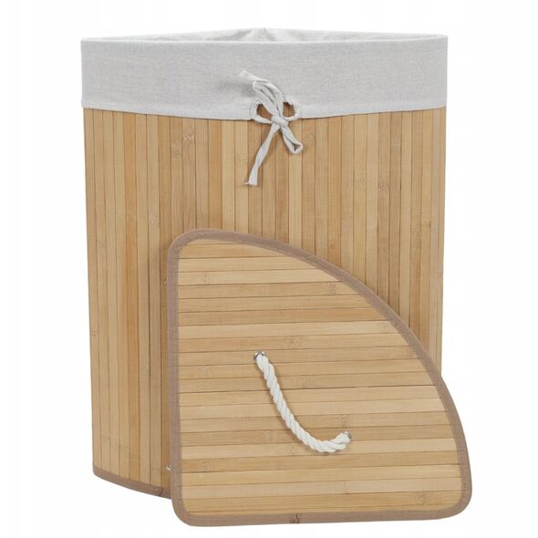 Γωνιακό καλάθι πλυντηρίου με καπάκι, μπαμπού, 60 λ