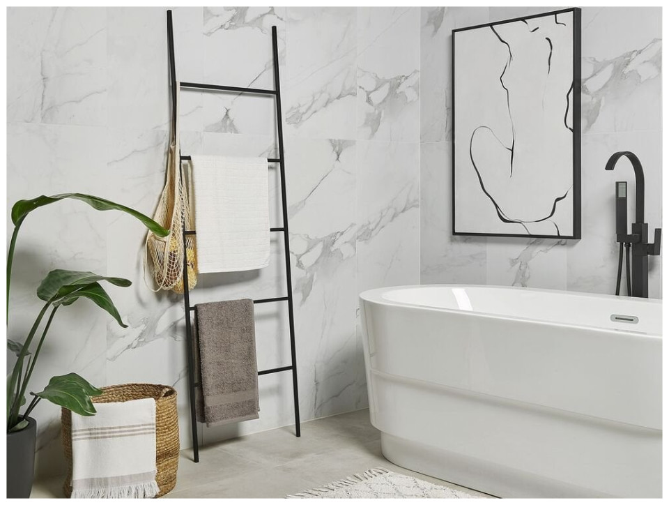 Wieszak na ręczniki to sprytne rozwiązanie, dzięki któremu twoja łazienka będzie wyglądała na czystą i zorganizowaną. Nie tylko zapewnia miejsce na wyschniecie ręczników, ale może być również elementem przyciągającym uwagę domowników czy gości. Ze względu na wykonanie z wytrzymałego i łatwego w pielęgnacji metalu, ten stojak jest idealny do każdej łazienki. Jego modny kształt drabinki szczególnie dobrze sprawdzi się we wnętrzach w stylu industrialnym.