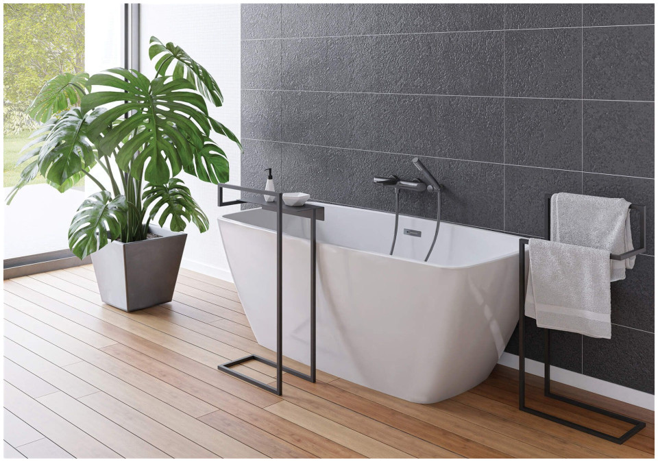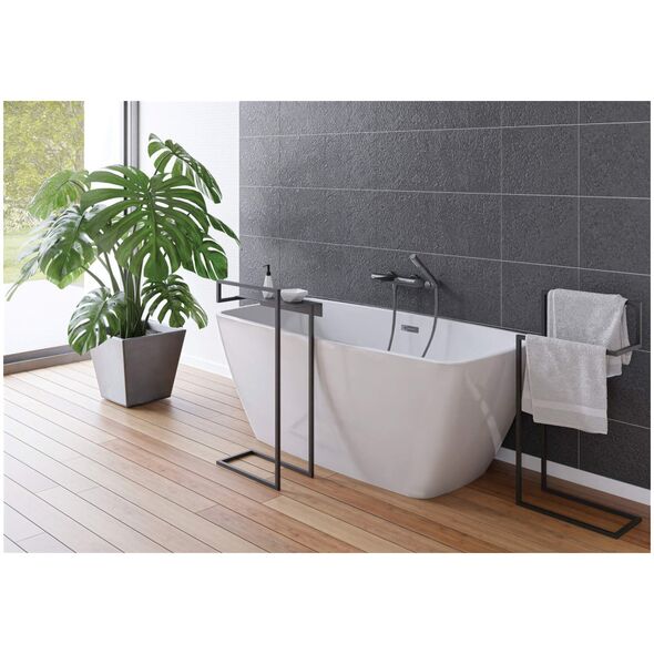 Polska marka 33+ lat Eko opakowania Potrójna kontrola jakości Kolekcja Mokko Wieszak podłogowy z półką Zalety produktu Produkcja z minimalnym odpadem - zgodnie z ideą Less WasteW ofercie dedykowany środek bezpieczny dla czyszczonych powierzchniTylko najlepsze materiały, których jakość potwierdzamy badaniami w laboratorium Produkcja z minimalnym odpadem - zgodnie z ideą Less Waste W ofercie dedykowany środek bezpieczny dla czyszczonych powierzchni Opis produktu Dla osób, które kochają kreatywne rozwiązania i nowoczesny design, powstał wieszak podłogowy z półką z serii Mokko. Niezastąpiony mebel przy wannie wolnostojącej i nie tylko. Zawiesisz na nim ręcznik lub ubranie i postawisz kosmetyki. Praktyczna półka przyda się również podczas relaksujących, długich kąpieli jako miejsce na świeczkę lub lampkę wina. Wieszak z półką można przestawiać w dowolne miejsca: w okolice umywalki, kabiny prysznicowej, przyda się również w sypialni czy na tarasie. Poza praktycznym zastosowaniem jest prawdziwą ozdobą nowoczesnych wnętrz. Produkcja z minimalnym odpadem - zgodnie z ideą Less Waste W Deante jesteśmy świadomi zagrożeń w obliczu których stoi środowisko naturalne oraz kurczących się zasobów planety. Dlatego dodatki łazienkowe produkujemy zgodnie z ideą Less Waste. Oznacza to, że wykorzystujemy dostępne materiały w jak największym stopniu. Dzięki temu odpady są zmniejszone do absolutnego minimum. W ofercie dedykowany środek bezpieczny dla czyszczonych powierzchni Użycie dedykowanych środków powoduje, że powierzchnie nie niszczą się i długo pozostają gładkie, ułatwiając kolejne sprzątanie. Specjalnie dobrany skład usuwa najczęściej spotykane zabrudzenia bardzo skutecznie. Z drugiej strony preparaty są delikatne dla danego typu nawierzchni (metal, granit, ceramika i inne), nie wchodząc z nimi w reakcje chemiczne. Preparaty są biodegradowalne i tym samym bezpieczne dla środowiska. Ze środkami do czyszczenia Deante utrzymanie nienagannego porządku będzie bardzo proste!