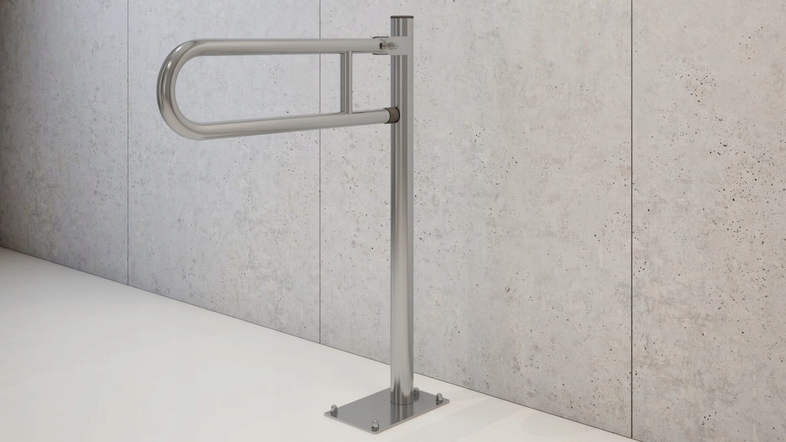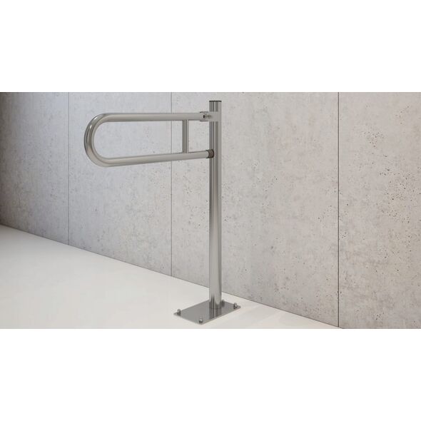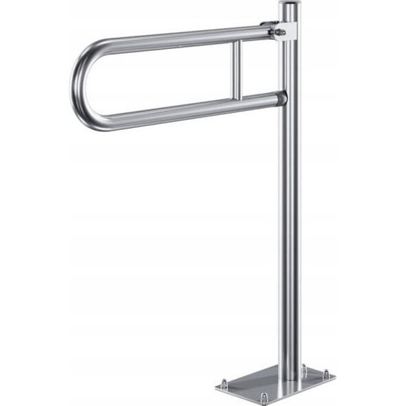 Κάγκελο καμπύλο ανακλινόμενο O 32mm. στερεωμένο στο πάτωμα, κατασκευασμένο από ανοξείδωτο ατσάλι ανθεκτικό στα οξέα AISI 304, φινίρισμα γυαλισμένο, δυνατότητα τοποθέτησης βάσης για χαρτί υγείας PBPX, διάσταση: 600 mm.