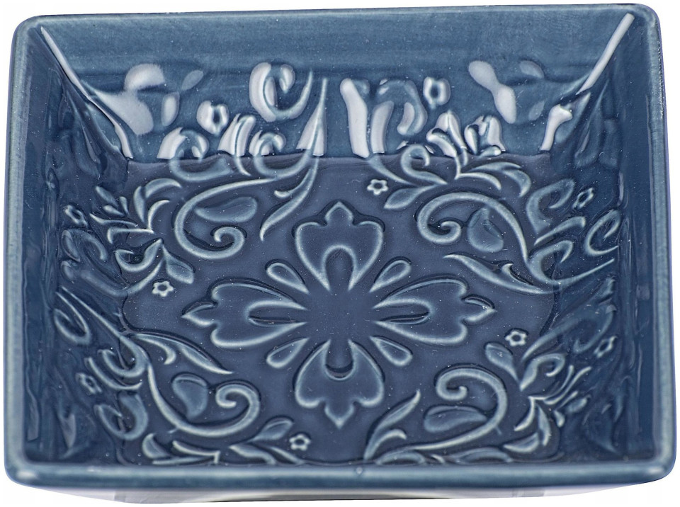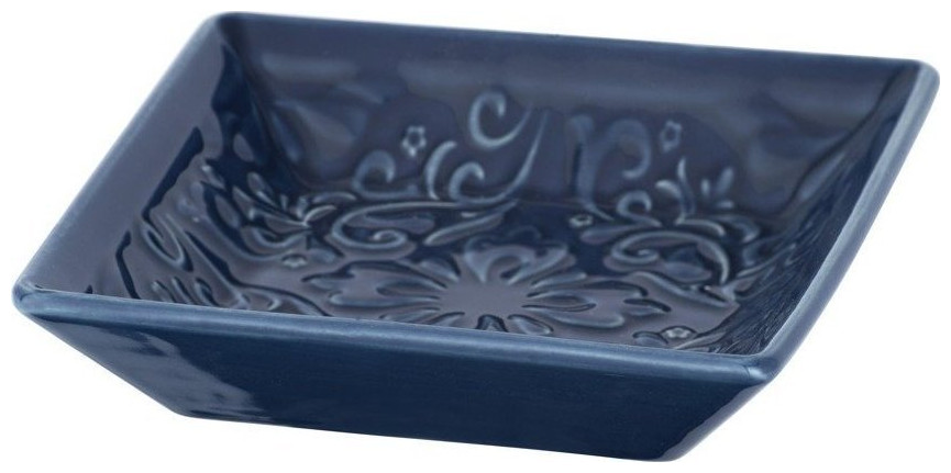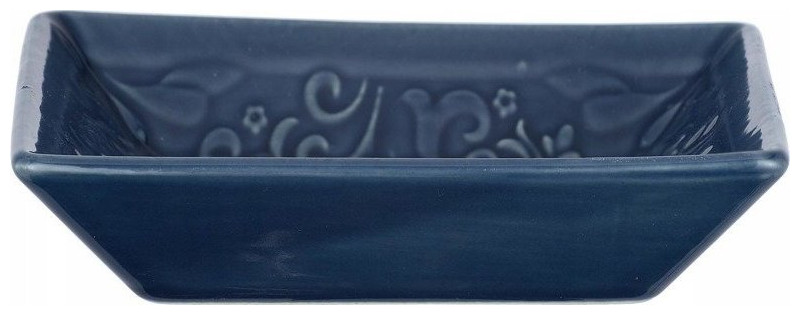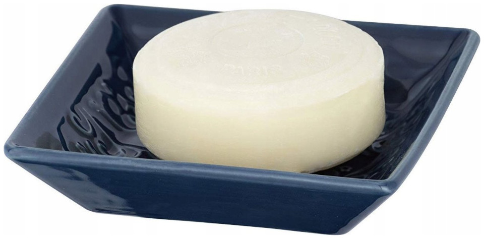 Wenko Στυλάτη σαπουνοθήκη με σχέδια, διακόσμηση μπάνιου, ρουστίκ, στολίδι, ανθεκτική κεραμική, σκούρο μπλε χρώμα