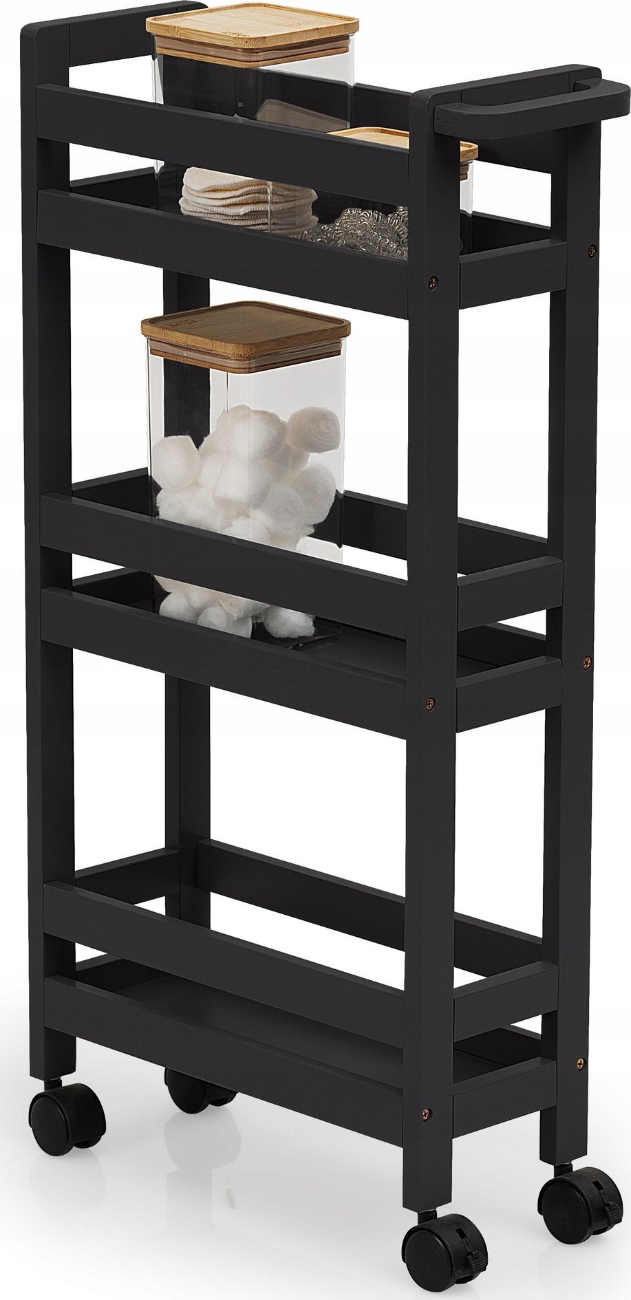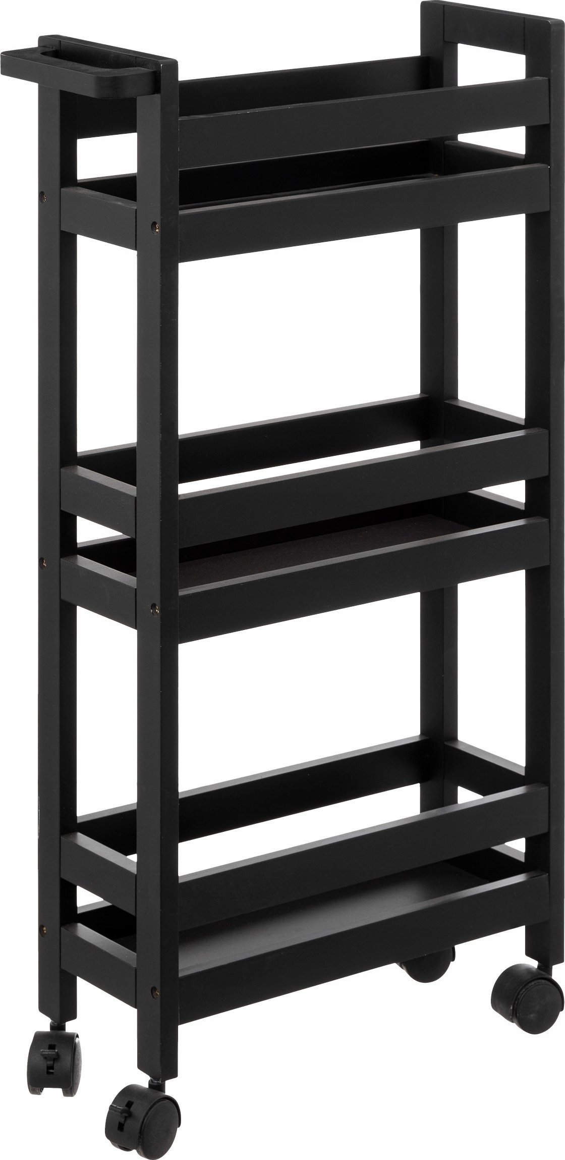Οργανώστε και τακτοποιήστε το χώρο σας με το τρόλεϊ από την 5five. Διαθέτει 3 ράφια και είναι κατασκευασμένο από MDF_E1, το οποίο είναι εύκολο στη συντήρηση, αλλά παράλληλα και ανθεκτικό στις φθορές και τον χρόνο. Kάθε ράφι αντέχει βάρος μέχρι και 2 κιλά. Διαθέτει λαβή και 4 ρόδες για πιο εύκολη μεταφορά. Χαρακτηριστικά
