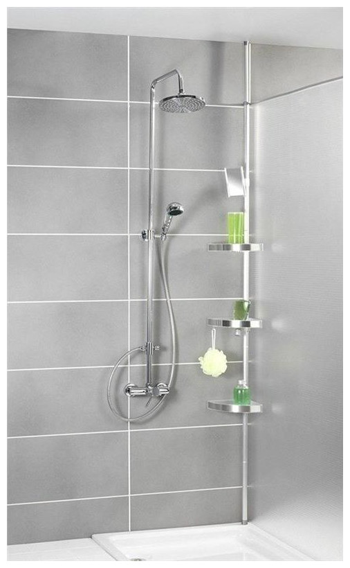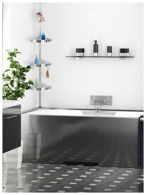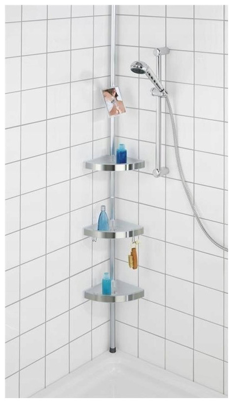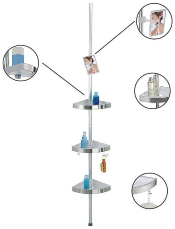 Γωνιακό ράφι μπάνιου - ράφι ντους Premium Edge Matt, 3 επίπεδα, καθρέφτης, τηλεσκοπικό, WENKO
