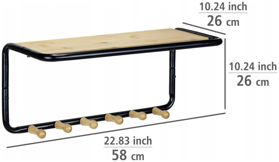 Ράφι τοίχου Wenko με μπαμπού γάντζους, 58 x 26 x 26 cm, Loft, WENKO