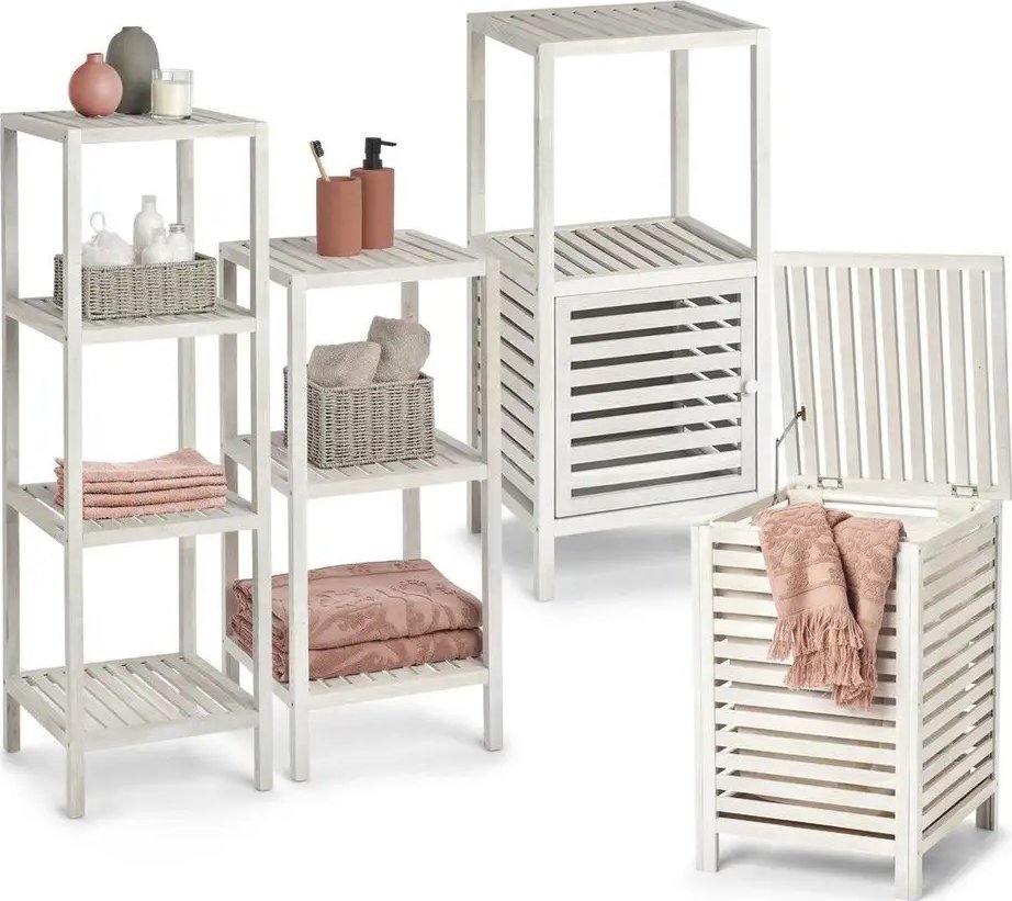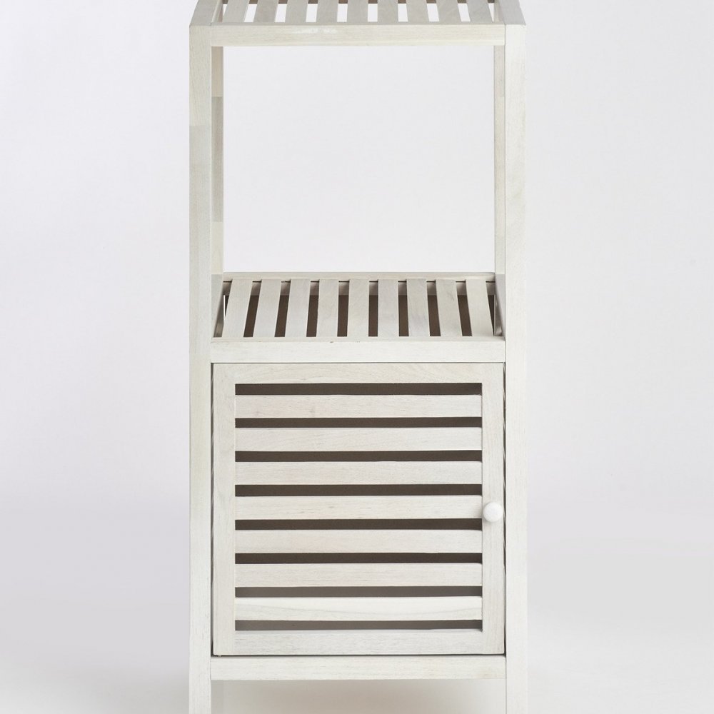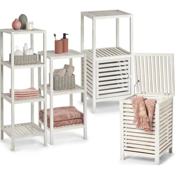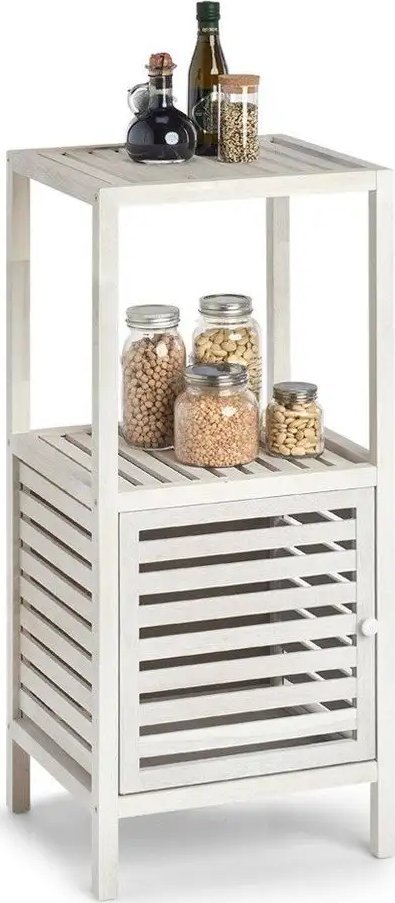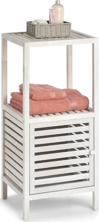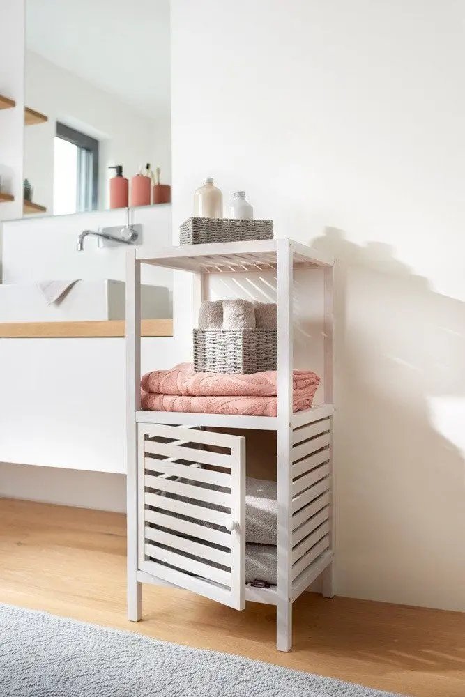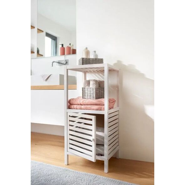 Ξύλινη ραφιέρα μπάνιου με ντουλάπι, 2 επίπεδα, λευκό χρώμα, ZELLER