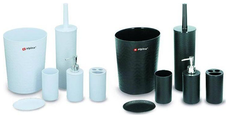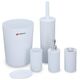 Σετ μπάνιου από πλαστικό. Το σετ έχει: · Κάδος απορριμμάτων 5 L · Βούρτσα τουαλέτας · Δοχείο σαπουνιού · Κούπα · Κύπελλο οδοντόβουρτσας · Σαπουνάκι