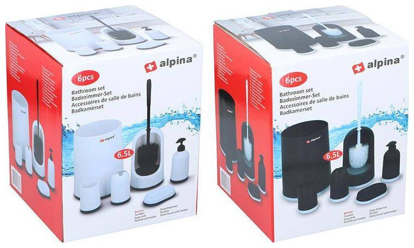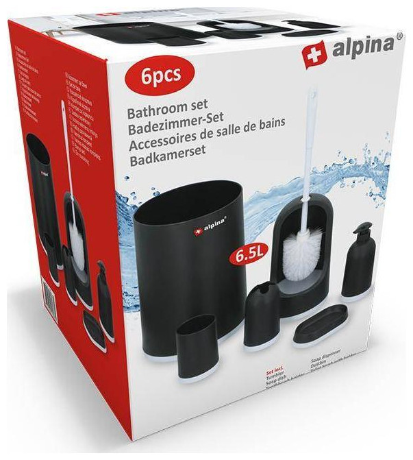 Alpina Alpina - σετ μπάνιου 6 τεμαχίων (μαύρο-λευκό)