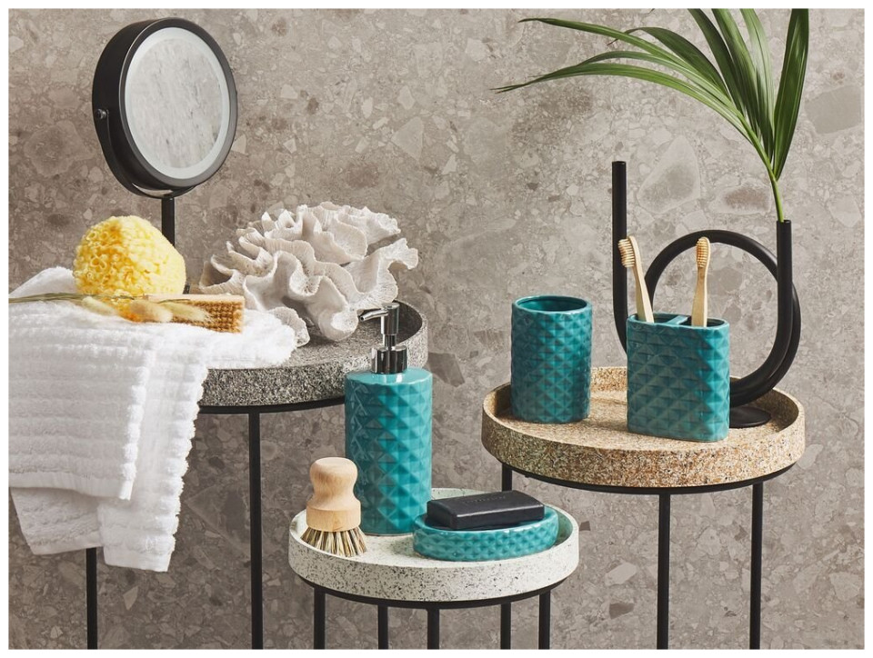 Ten zestaw akcesoriów łazienkowych jest nie tylko stylowy, ale i funkcjonalny. Teraz możesz mieć pod ręką wszystko, co niezbędne do codziennej pielęgnacji, dodatkowo urozmaicając całą aranżację. Piękny turkusowy kolor dopełni wygląd wnętrza w każdym stylu.