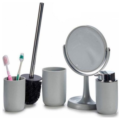 Αν θέλετε να φροντίζετε κάθε λεπτομέρεια του σπιτιού σας και να ακολουθείτε τις τελευταίες τάσεις σε προϊόντα που θα κάνουν τη ζωή σας πιο εύκολη, αγοράστε Σετ Μπάνιου από ανοξείδωτο ατσάλι Πολυπροπυλένιο (4 Μέρη) στην καλύτερη τιμή Χρώμα: Γκρι Υλικό: πολυπροπυλένιο Ανοξείδωτο ατσάλι Αριθμός τεμαχίων: 4 Μέρη Περιλαμβάνει: 19 x καθρέφτης 14 x 28 cm γυαλί/ποτήρι 7,5 x 7,5 x 10 cm βούρτσα τουαλέτας 9 x 9 x 36,5 cm δοσομετρητής σαπουνιού 7,5 x 7,5 x 12,5 cm...