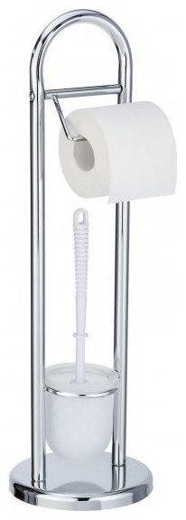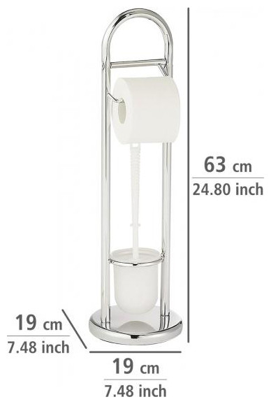 Wenko Siena Uchwyt rolki toalety z uchwytem na szczotki Poręczny uchwyt na szczotkę toaletową i rolkę papieru toaletowego. Uchwyt jest stylowym atrybutem i prawdziwie przyciągającym wzrok do łazienki lub toalety. Specyfikacje: Kolor: chrom Materiał: stal nierdzewna Średnica: 19 cm Wysokość: 63 cm Zawartość: 1 Posiadacz 1 Szczotka toaletowa