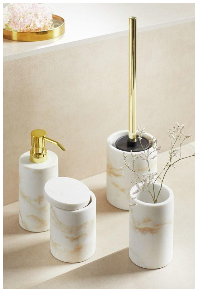 Οδός Λευκή βούρτσα τουαλέτας Κομψή βούρτσα τουαλέτας, κατασκευασμένη από πολυρητίνη, με δοχείο και αντικαταστάσιμη μύτη Χαρακτηριστικά προϊόντος: Υλικά: πολυρητίνη Χρώματα: Λευκό Στυλ: Glamour Διάμετρος: 7,5 cm Ύψος: 37 cm.