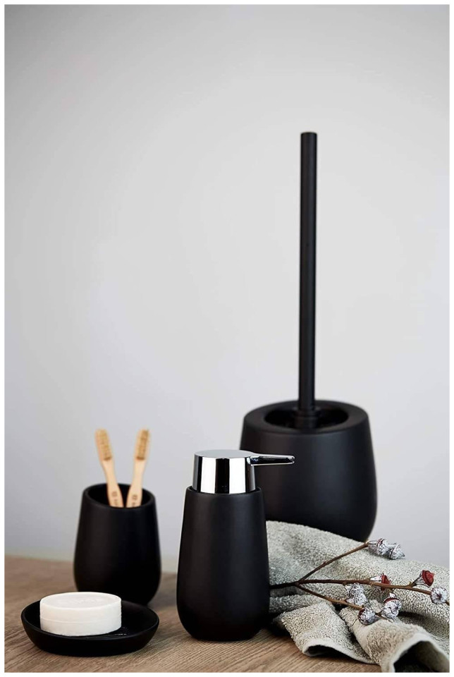 Badi Μαύρη βούρτσα τουαλέτας Κατασκευασμένη από κεραμικά, ολόμαυρη βούρτσα τουαλέτας με δοχείο και μύτη σιλικόνης Χαρακτηριστικά προϊόντος: Υλικά: ΚεραμικάΧρώματα: Μαύρο Στυλ: Μοντέρνο Διάμετρος: 13,5 cmΎψος: 38 cm