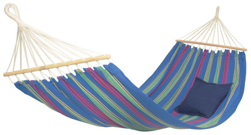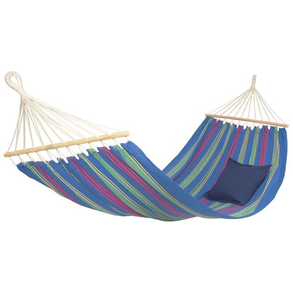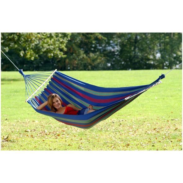 Oferta Amazonas obejmuje hamaki ogrodowe z poprzeczkami i bez oraz w różnych rozmiarach - dla jednej, dwóch osób, a także kilkuosobowe hamaki rodzinne w rozmiarze XXL. Doskonale sprawdzają się do odpoczynku, popołudniowej drzemki lub po prostu chwili dla siebie za domem albo na tarasie. Wykonane są w całości z naturalnej południowoamerykańskiej bawełny wysokiej jakości lub z ekologicznej mieszanki tej bawełny i poliestru z wykorzystaniem EllTex. To dzianina, która sprawia, że hamaki są odporne na działanie warunków warunki atmosferycznych. Mimo opadów deszczu, wilgotności oraz promieni słonecznych ich materiał zachowuje wysoki poziom wytrzymałości i intensywny kolor.