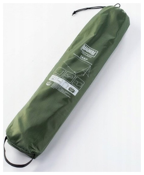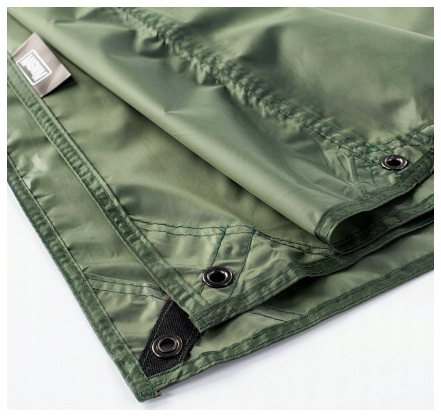 Plandeka trekkingowa Rozmiar: 285 x 240 cm (po spakowaniu: 45 x 8 cm) Waga: 650 g Skład materiałowy: - tropik: 100% poliester Specyfikacja: - stopień wodoodporności tropiku: 2 000 mm - uv50 - 8 szt. śledzi, 8 szt. Linek