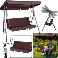 Κούνια Κήπου Τριών Ατόμων Κρεμαστή Μαξιλάρια Στρώμα Καφέ