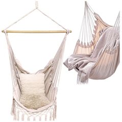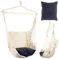 Κρεμαστή καρέκλα αιώρα ProGarden Βραζιλίας μπεζ με γραφί μαξιλάρι