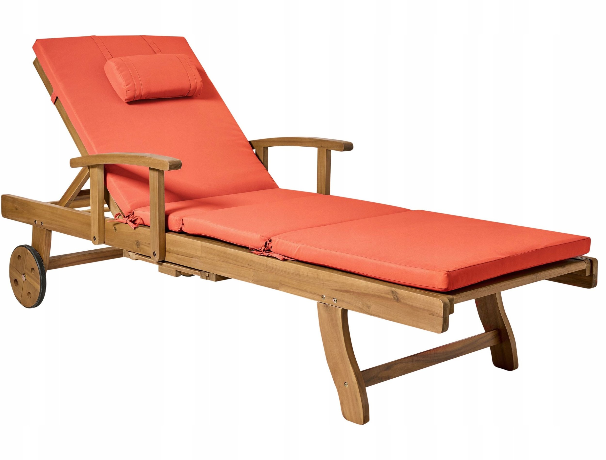 Leżak ogrodowy z poduszką JAVA PREMIUM Drewno akacjowe Czerwony