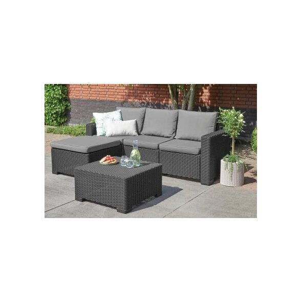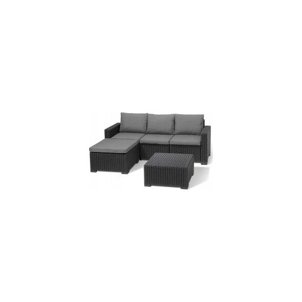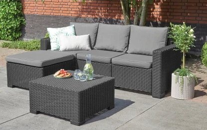 Keter Komplet mebli California grafit Nr produktu: 7159700Keter Komplet mebli California grafit Keter Komplet mebli California grafit Zestaw California to idealne rozwiązanie na balkon, taras lub do ogrodu. Wygodna sofa narożna i praktyczny stolik kawowy umożliwią Ci cieszenie się relaksem na świeżym powietrzu w wygodny sposób. Nieprzemijająca elegancja Meble wyróżniają się eleganckim i pełnym klasy wyglądem. Tworzywo sztuczne, z którego są wykonane, imituje plecionkę technorattanową. Stonowana kolorystyka pasuje do dodatków w każdym stylu i kolorze. Trwałość i praktyczność Tworzywo sztuczne, z którego wykonane są meble, charakteryzuje się trwałością i odpornością na warunki atmosferyczne. Jest również łatwe do czyszczenia - wystarczy użyć wilgotnej ściereczki z detergentem. 123 x 80 x 71 cm Składa się z sofy i stolika Trwałe tworzywo odporne na czynniki zewnętrzne Struktura plecionki rattanowej Stawiamy na doświadczenie i autentyczne produkty o najwyższej jakościDane techniczne Atrybuty produktu: Stan: Nowy Wymiary i waga (netto): Waga: 44.6 kg Wysokość: 72 Szerokość: 199 Głębokość / Grubość: 68 Wysoka jakość to fundament! Dbamy o to, by jakość oraz design szły w parze. Produkty nie tylko świetnie wyglądają, ale są również trwałe i solidne.Produkty oferowane przez nas wyróżniają się połączeniem wysokiej jakości materiałów, a także nowoczesnego designu i praktycznych rozwiązań w przystępnej cenie.