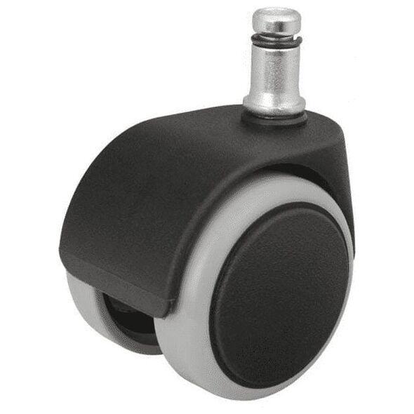 Komplet kółek gumowanych do fotela biurowego Komplet pięciu sztuk kółek gumowanych w czarno-szarej kolorystyce. W zestawie znajduje się 5 sztuk kółek o średnicy trzpienia 11 mm.Kółka doskonale nadają się do zastosowania przy podłogach typu parkiet czy panele, oraz do twardych powierzchni (terakota, płytki). Uniwersalny trzpień pasuje do większości foteli dostępnych na rynku. Miękkie kółka nie rysują powierzchni. Dane techniczne: Średnica trzpienia 11 mm Ilość kółek w zestawie 5 sztuk Kółka nie rysują powierzchni
