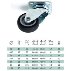 Ροδάκια Καρέκλας Καουτσούκ Περιστρεφόμενα VILDE Διάμ. 5 εκ. 5 τεμ.