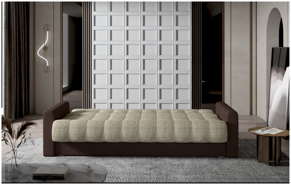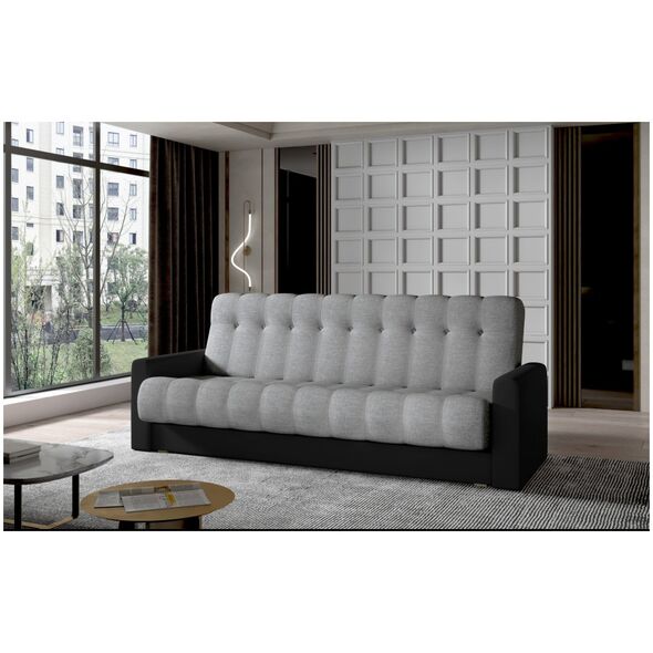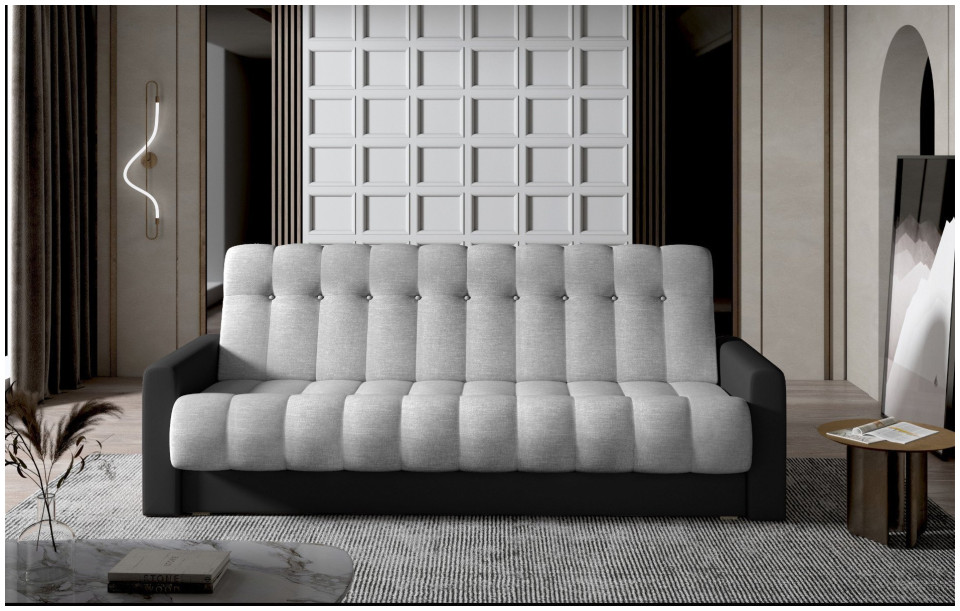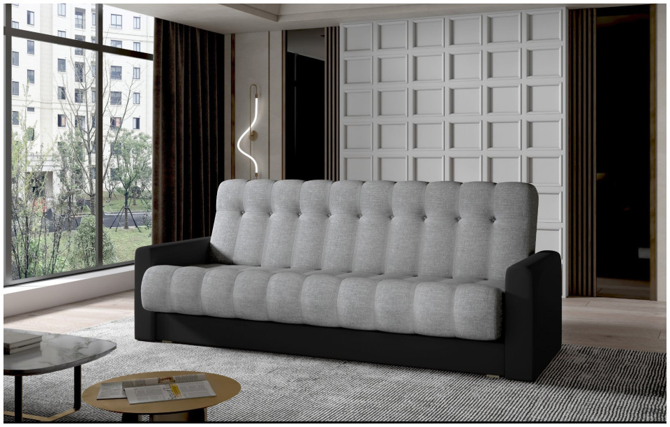 Sofa rozkładana z funkcją spania GARETT w modnym szaro-czarnym kolorze będzie pasować zarówno do salonu, jak i pokoju młodzieżowego.