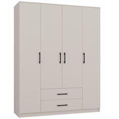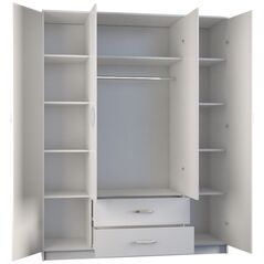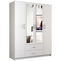 Fabryka Mebli Akord Ντουλάπα υπνοδωματίου 90 cm 4 πόρτες 4 ράφια ράβδος για ρούχα - λευκή
